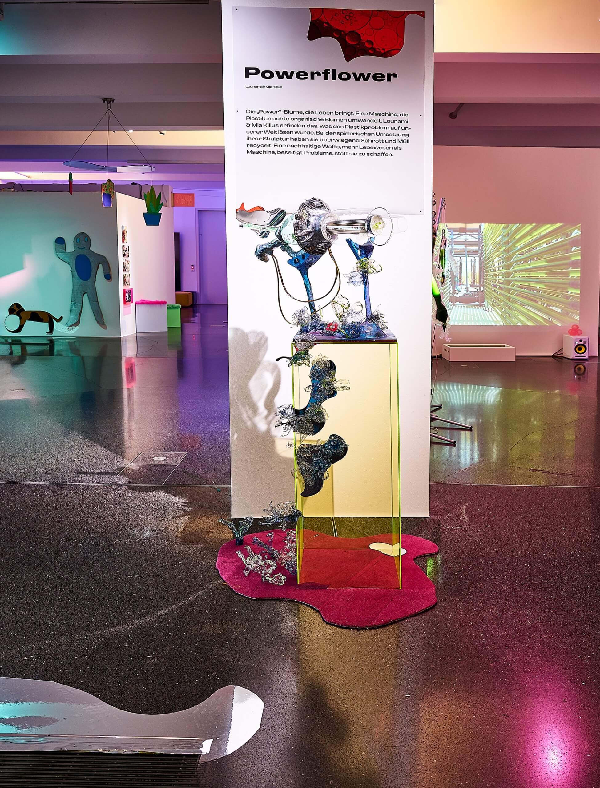 Power Flower ist die spielerische Umsetzung einer Maschine, die Plastik in organische Blumen umwandeln kann.