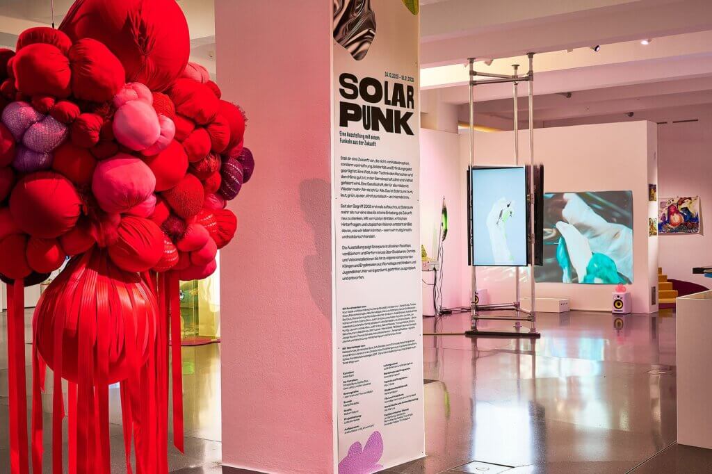 Naturkatastrophen überschlagen, lädt die Ausstellung „Solarpunk“ dazu ein, gemeinsam die Vision einer Zukunft zu entwerfen, in der Inklusion, Klimagerechtigkeit, Diversität und Gleichberechtigung möglich und die von Nachhaltigkeit, Klimaschutz und einer Überwindung von Konflikten geprägt ist.