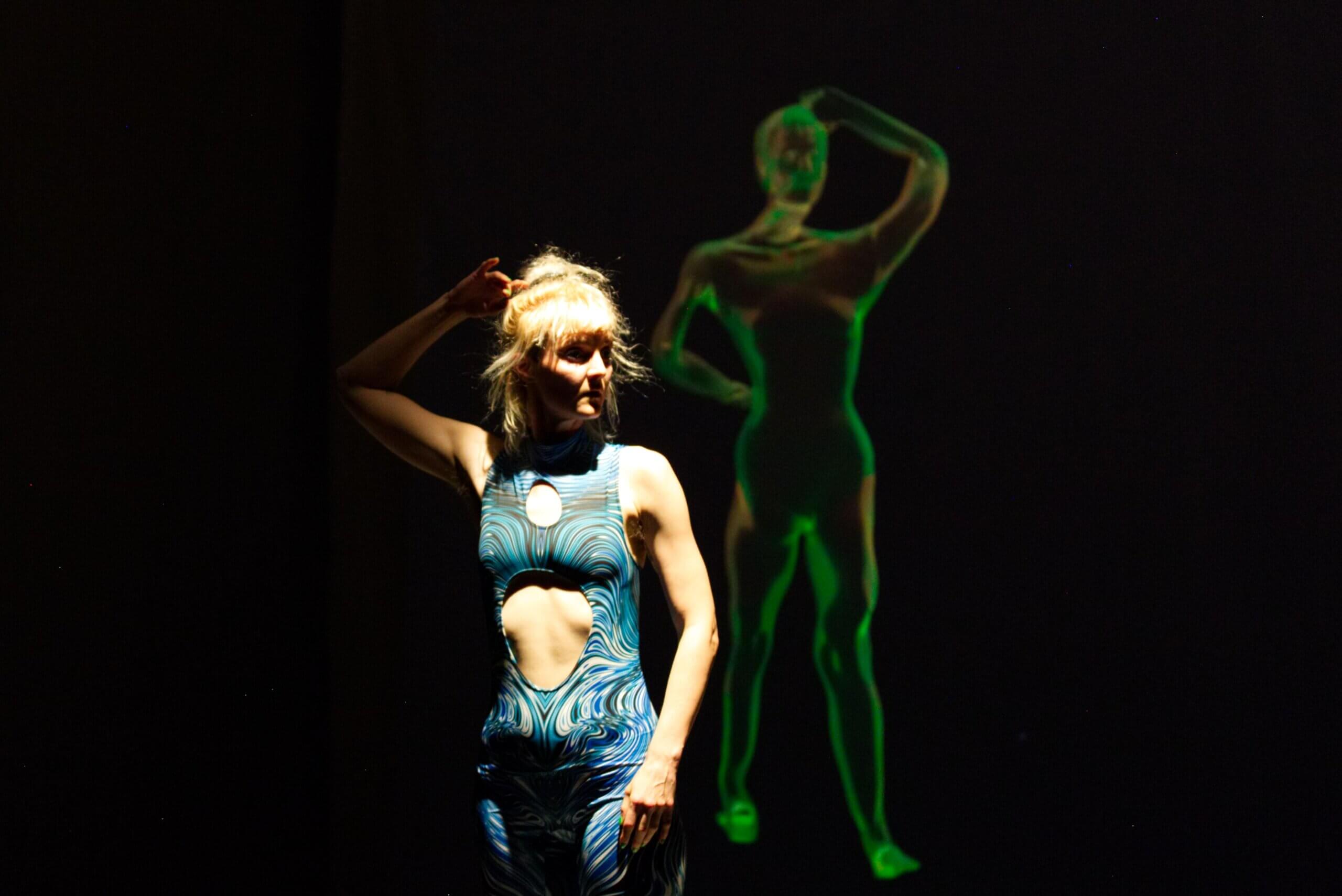 In der performativen Installation „Post Corpus Shapeshifter“ geht es um die Frage nach der Zukunft des Körperlichen in einer digitalen Welt.